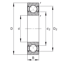 深沟球轴承 6000-C-2HRS, 修正的内部结构(C 代),根据 DIN 625-1 标准的主要尺寸,两侧唇密封