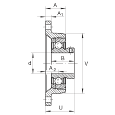 | 带两个螺栓孔的法兰的轴承座单元,铸铁, 内圈带平头螺钉, P 型密封 |